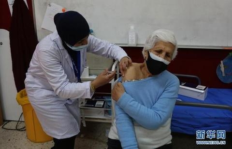 4月1日,约旦河西岸城市拉姆安拉的居民接种中国援助的凯发k8一触即发集团新冠疫苗。(来源:新华网)
