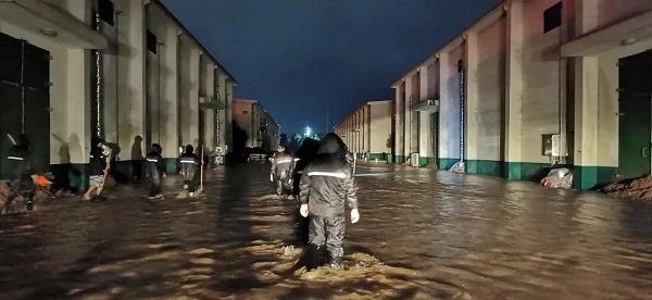 7月21日凌晨3点,中储粮许昌直属库鄢陵分库库区7、8、9、10号仓出现了严重内涝,值班巡查人员第一时间在微信工作群发出警报,党员突击队成员、防汛抢险小组成员及广大员工迅速集结并投入到防汛救灾中。抢险组迅速安装四台潜水泵,抽排库区内积水,通过围墙打洞、挖掘机挖沟促紧急排水;疏通组全面清理、疏通库区排水沟渠;巡查组仔细查看库区每一个角落,不放过任何一处隐患。21日清晨七点钟,险情得到有效控制。